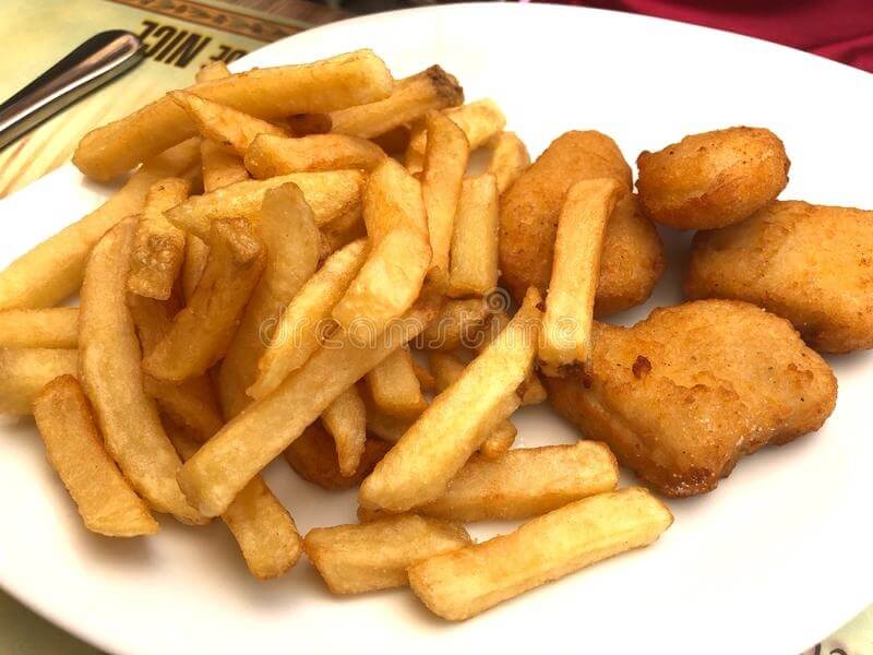 6 Bite size pieces of yumminess! Lightly battered pieces and hot chips