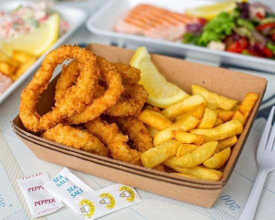 6 pieces of our tender salt and pepper squid with yummy hot chips!